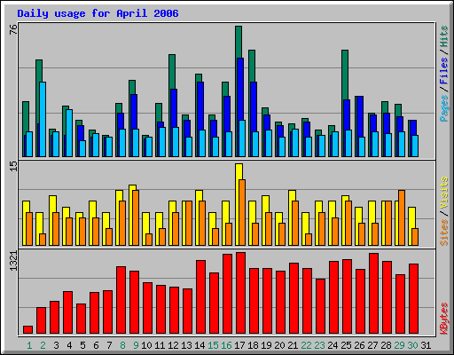 Day | Hits | Files | Pages | Visits | Sites | KBytes | ||||||