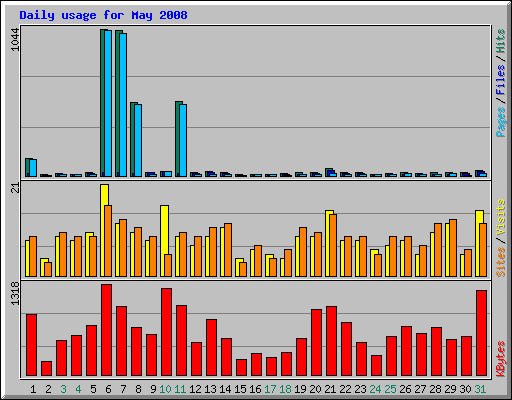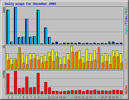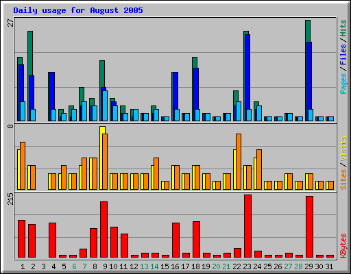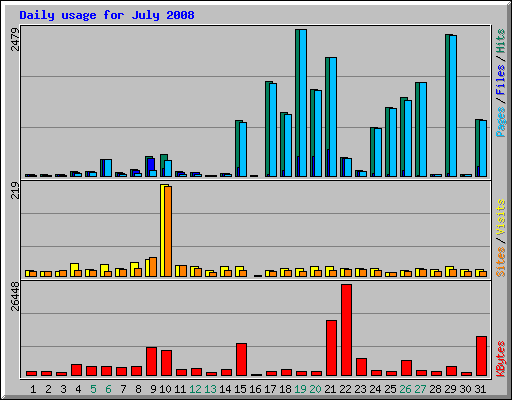 Day | Hits | Files | Pages | Visits | Sites | KBytes | ||||||