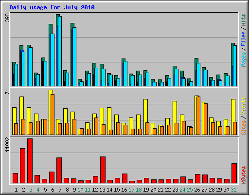 Day | Hits | Files | Pages | Visits | Sites | KBytes | ||||||